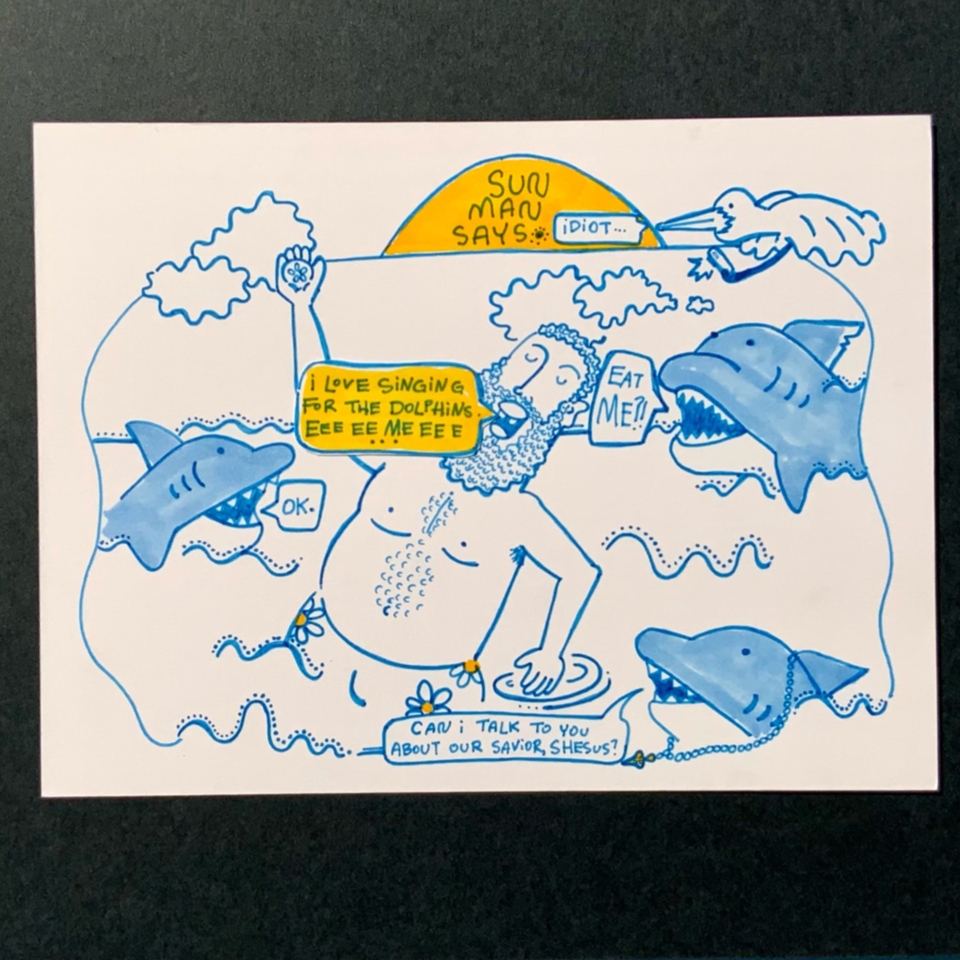 This 1 of 1 archival ‘Sun Man Says’ illustration is made to last and made to feel.